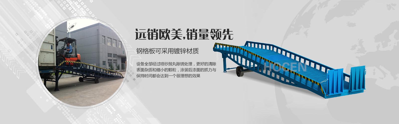 移動液壓登車橋是與叉車配合使用的貨物裝卸專用輔助設備,有了它,叉車能直接從地面進入汽車車廂內進行裝卸貨物的作業。